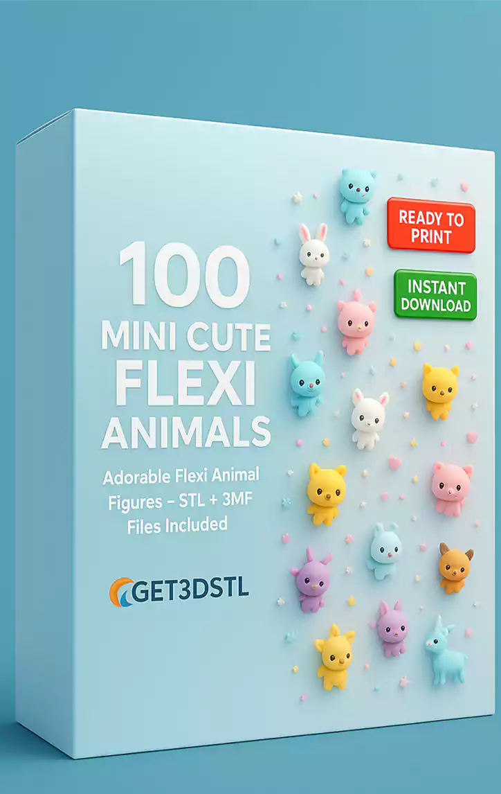 Download 100 Mini Cute Flexi Animals in STL & 3MF formats. Flexible, support-free 3D print toys perfect for kids, collections, and fast printing. Ideal for beginners and pros.