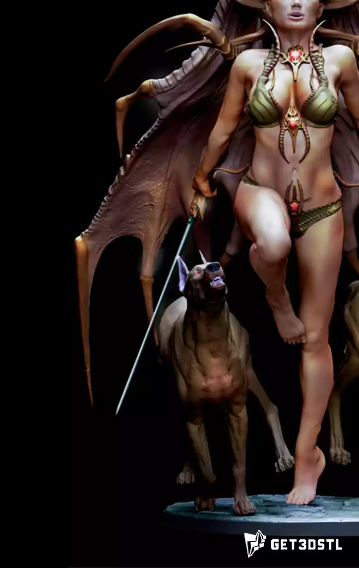 Step into the world of dark fantasy with this Abere with Dogs 3D Model STL File, featuring the mythical beauty Abere surrounded by her loyal beasts.