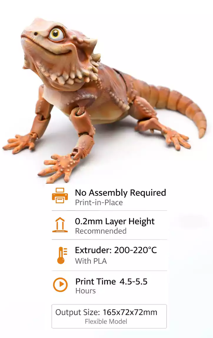 This Bearded Dragon STL file is a fully articulated 3D printable model designed for smooth printing and flexible movement.