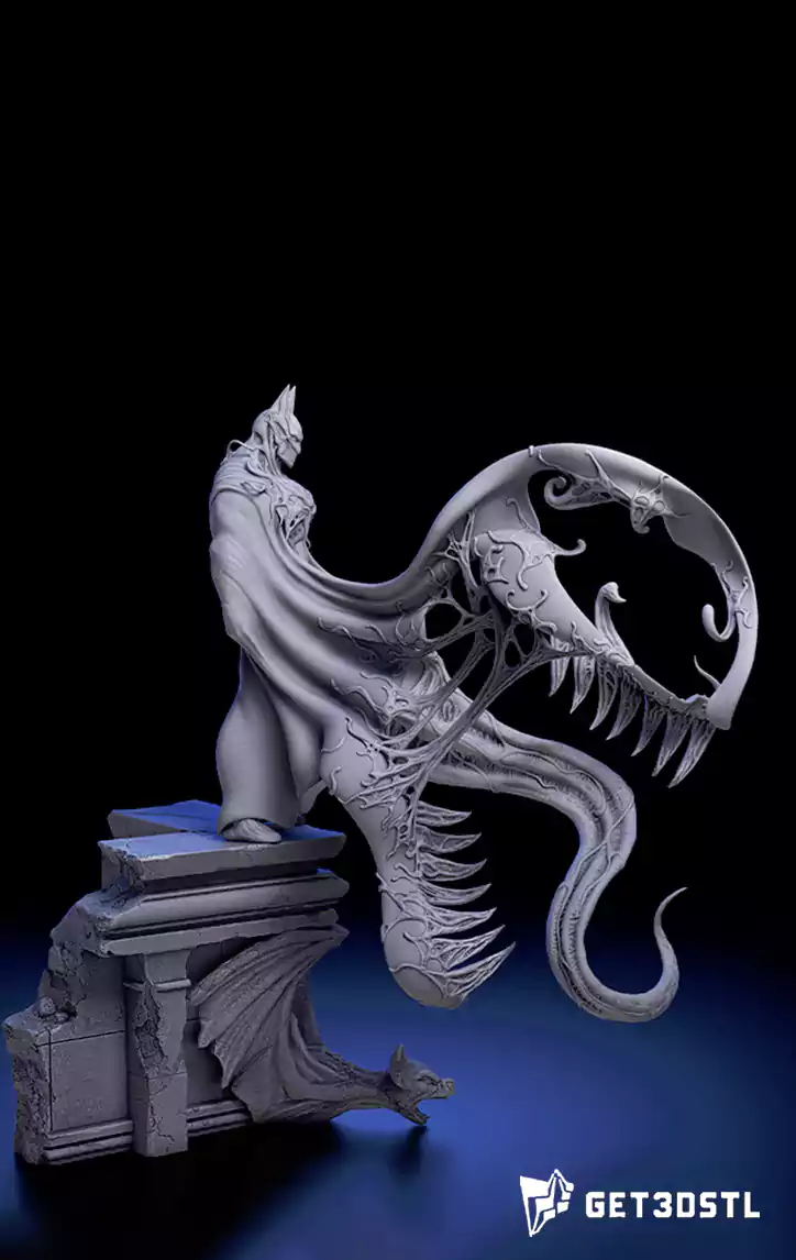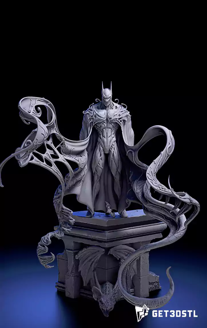 Download Dark Knight Hero Bat-Inspired STL 3D Print Model. Detailed superhero-style sculpture perfect for collectors, painters, and fantasy art fans.