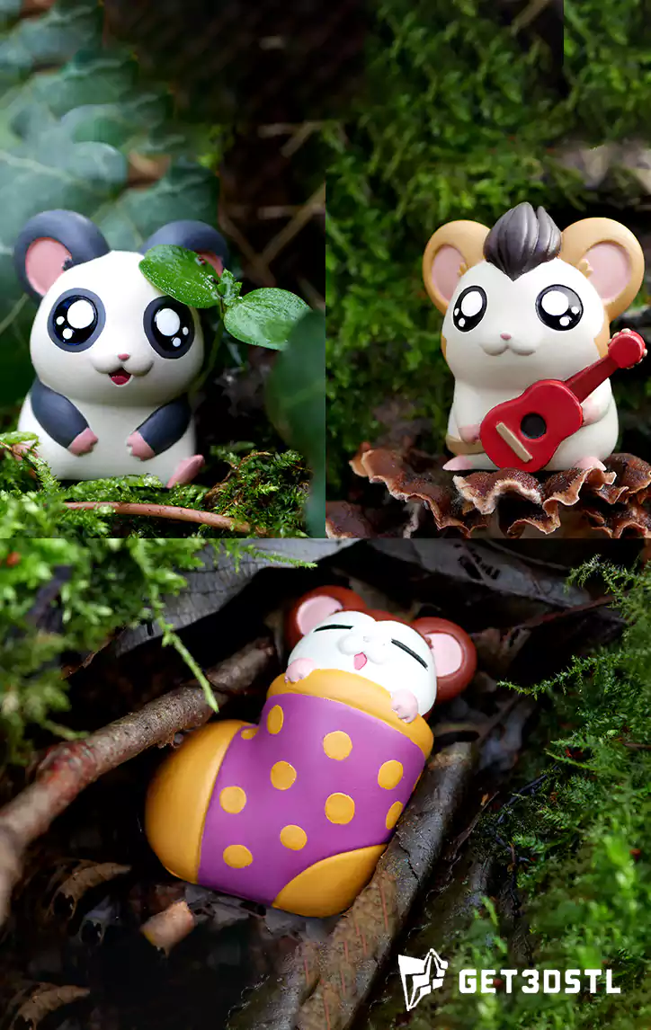Anime lovers, Hamtaro collectors, and hobbyists looking to print cute hamster figures.