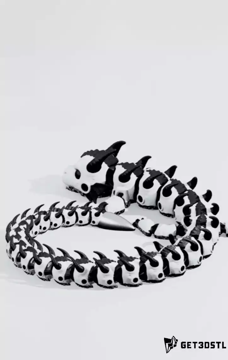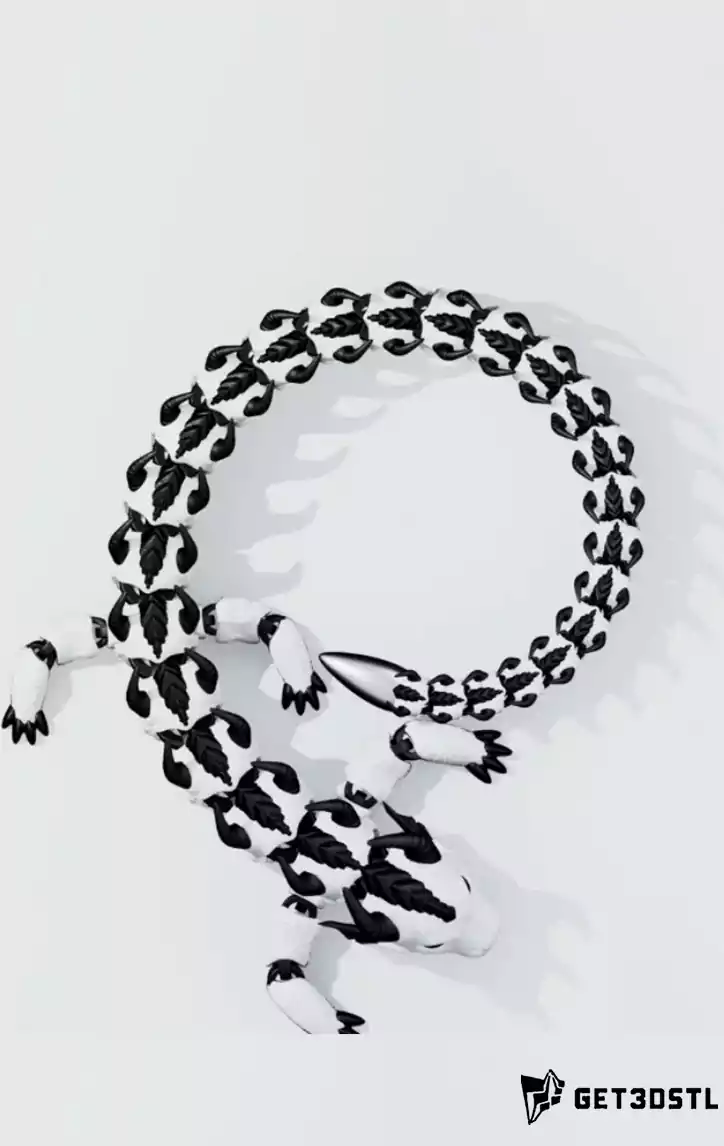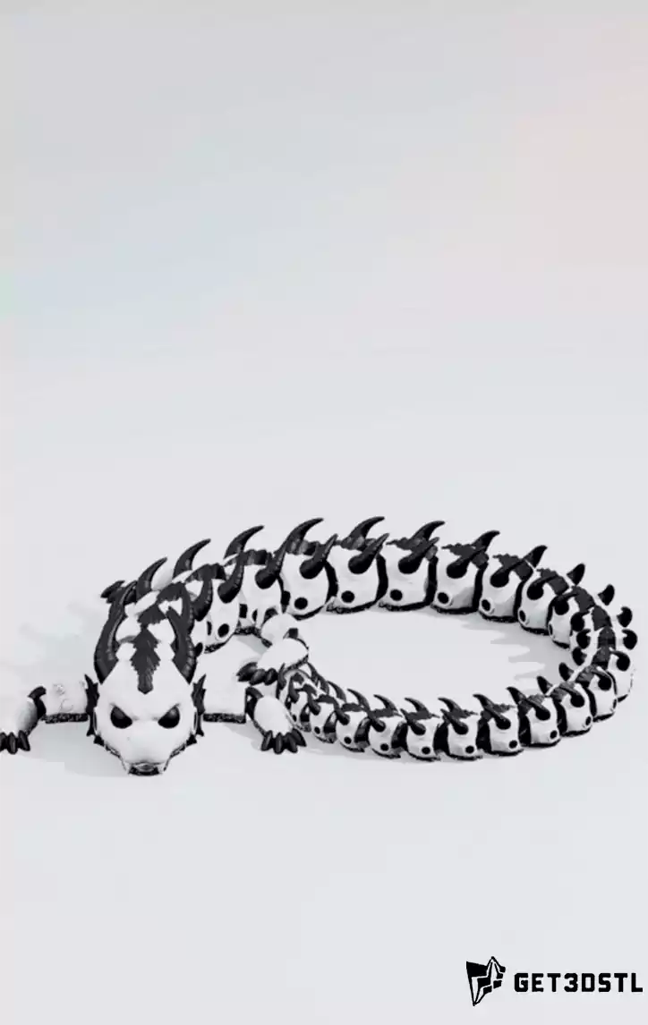 This model combines mechanical armor aesthetics with smooth, flexible joints, allowing the dragon to be fully poseable once printed.
