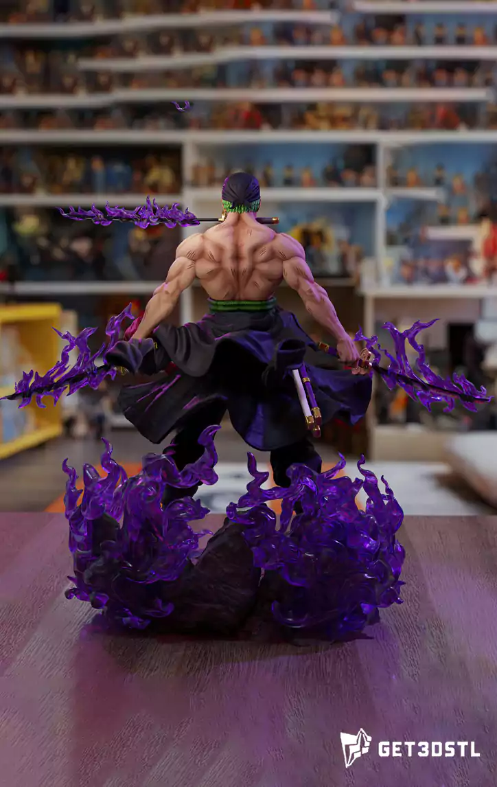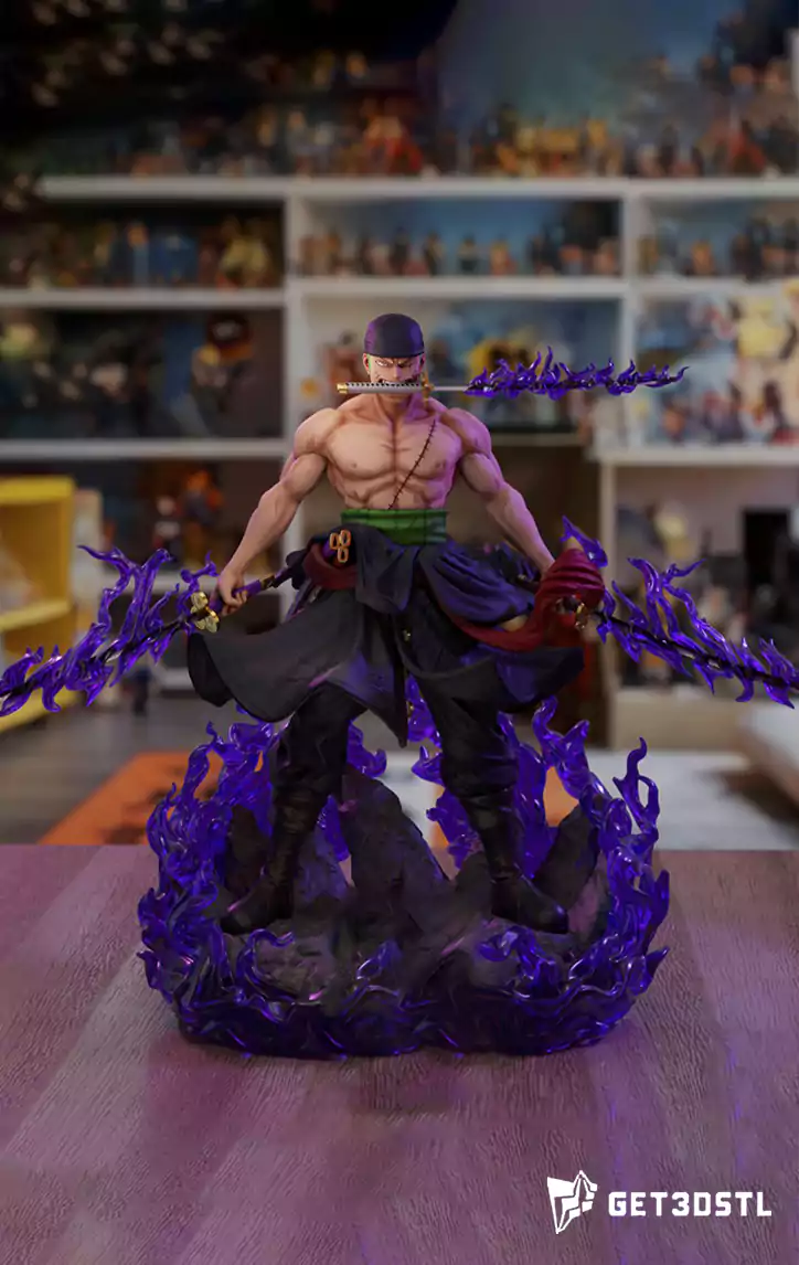 This detailed sculpt perfectly captures Zoro’s three-sword style (Santoryu) and his fearless battle stance making it a must-have piece for every One Piece fan and 3D print collector.